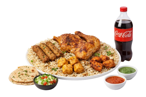Chicken Half 🍗 – Spiced and roasted half chicken, tender and juicy. 3P Chicken Seekh…Add to cart ₨ 4,900Arabic Mandi Platter (6 Person) 🍗🍖