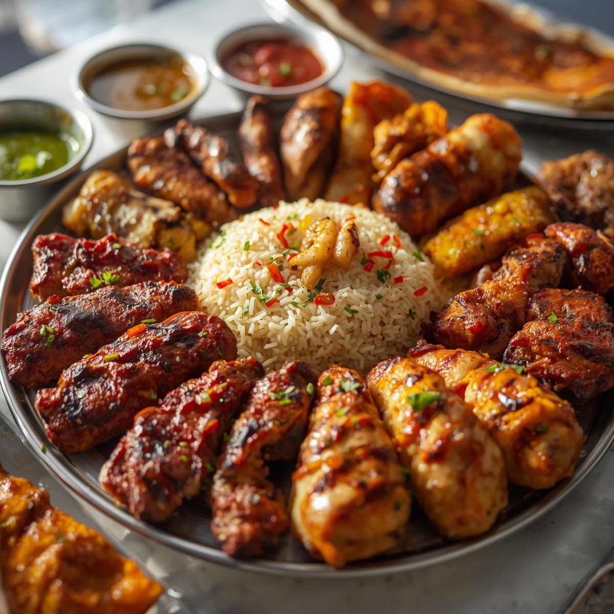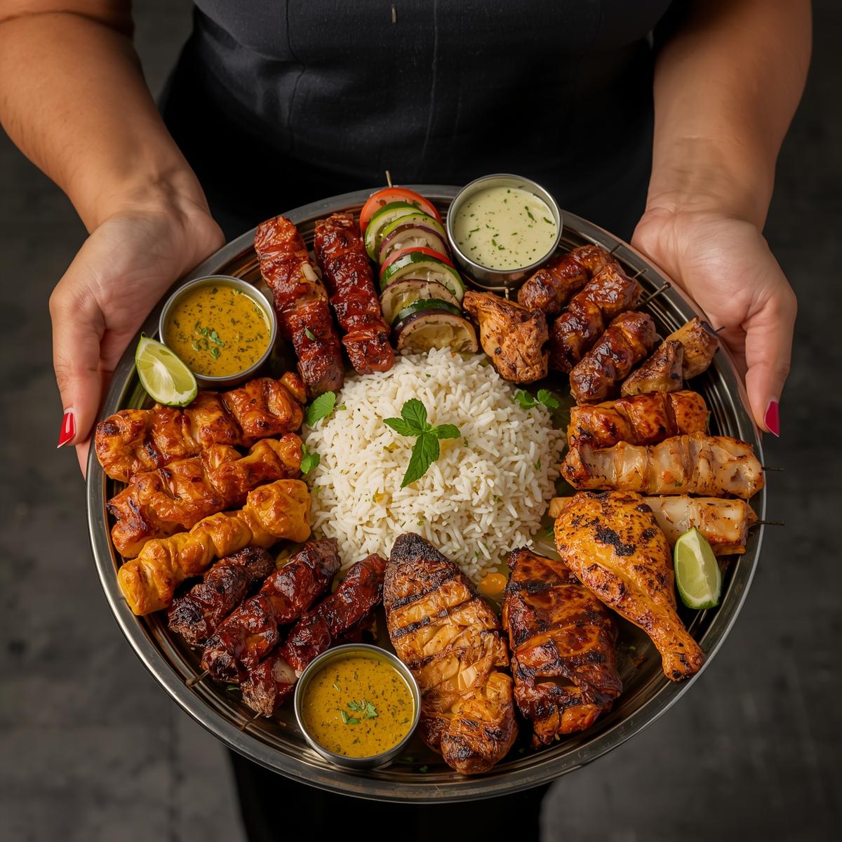 • Mandi Rice 🍚🌿 – Aromatic, flavorful rice to complement the meats.