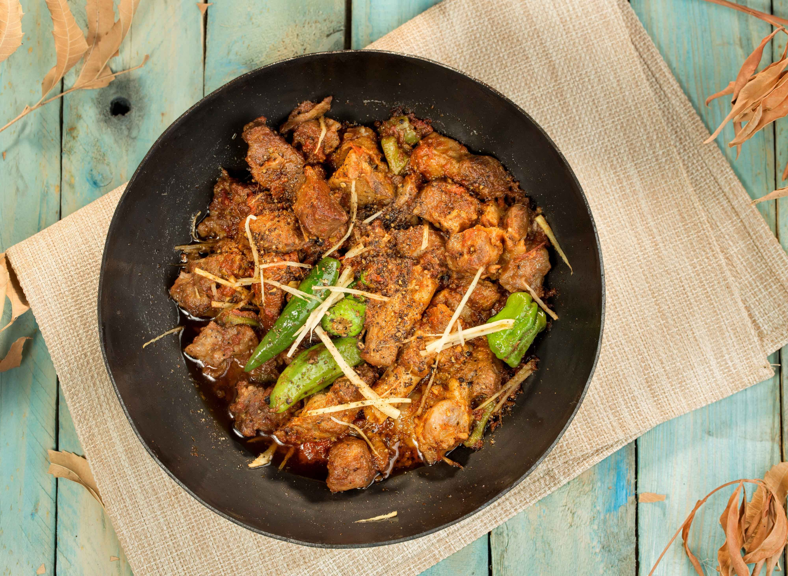 Tender mutton cooked in traditional Shanwari style with minimal spices, green chilies, and rich natural flavors.