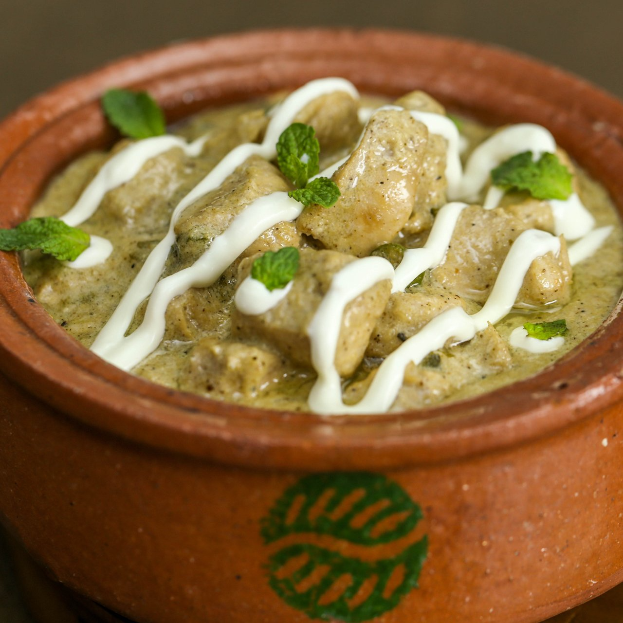 Tender mutton cooked in a creamy, mild white gravy with yogurt and subtle spices for a rich, delicate flavor.